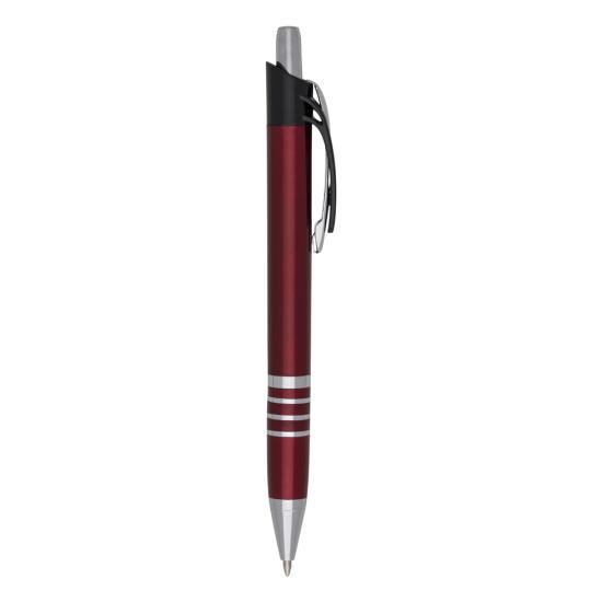 Descrição: Caneta plástica com carga esferográfica azul e acionamento por clique.